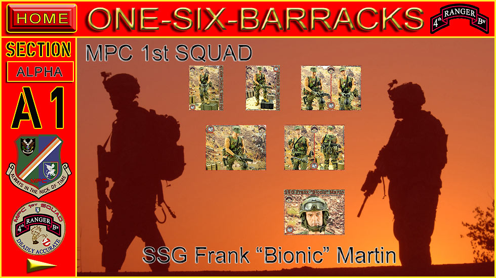 Return to 1st Squad MPC Return to MPC Return to Barrack A1 Return to Section ALPHA Return to Side Map Forward to next site SSG Frank "Bionic" Martin SSG Frank "Bionic" Martin SSG Frank "Bionic" Martin SSG Frank "Bionic" Martin SSG Frank "Bionic" Martin SSG Frank "Bionic" Martin